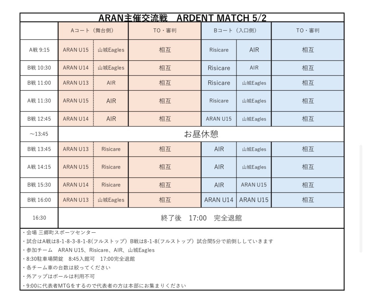 ——————————————————5/3(日)vs 長瀬中、EDGE集合 : 9時場所 : 長瀬中